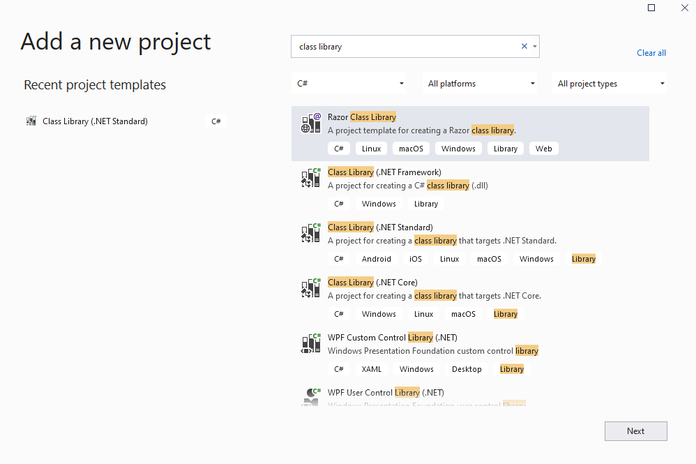 Trouble shooting 1: If you don’t see ‘properties’ folder (that contains AssemblyInfo.cs) in the Class Library project, check if you created .NET Framework Class Library or .NET Standard’s. They are different (.NET standard aims to run on more devices, hence lacking in new features – well I’m not really sure anyways).
