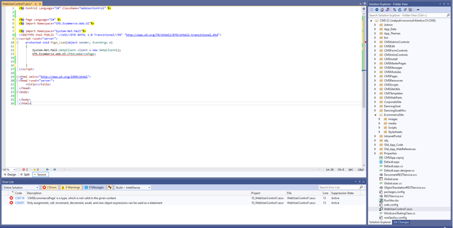 To reproduce some basic results, follow these steps. Go to CMS folder (in my case, it is C:\inetpub\wwwroot\CMS). Create a file under Web>C#>Web User Control. This generates an ascx extension file, with a line that says <%@ Control Language=”C#” …